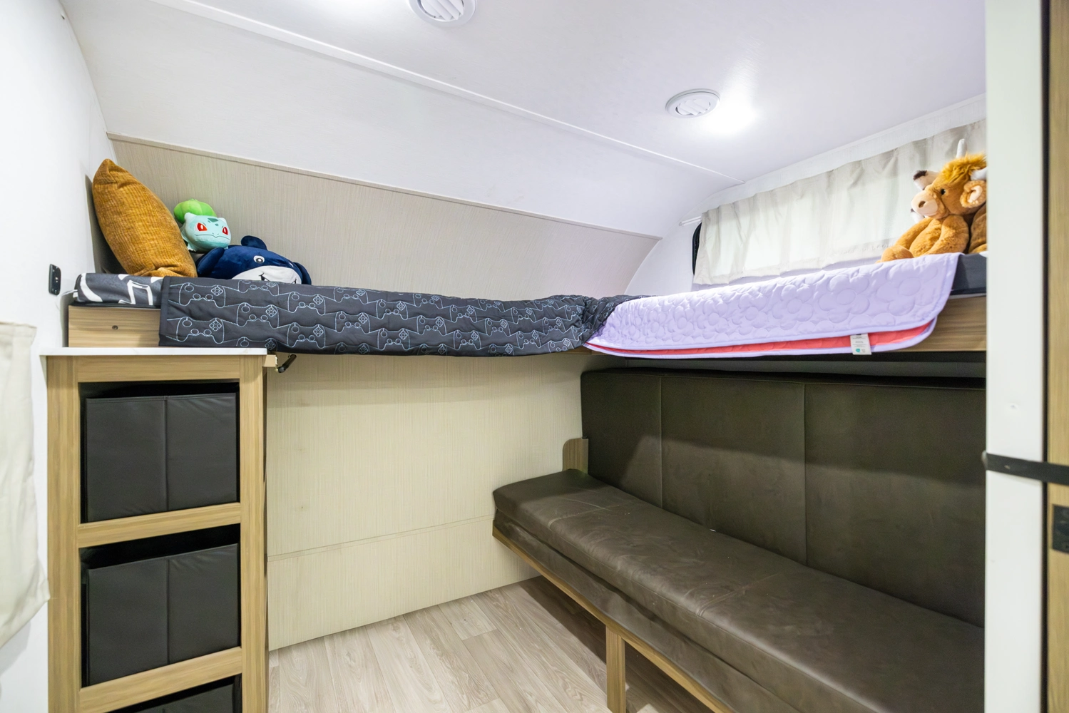 The 36VBDS is a unique, versatile bunkhouse that offers ample sleeping options so you can bring everyone camping! The front bedroom offers both the Versa-Queen and Versa-bunks, while the rear bedroom provides a queen bed, dresser, and closet. The living area features the fantastic Versa-Lounge with panoramic windows for great campsite views. Do not forget about the Stow N Go Storage conveniently below the Versa-Lounge.