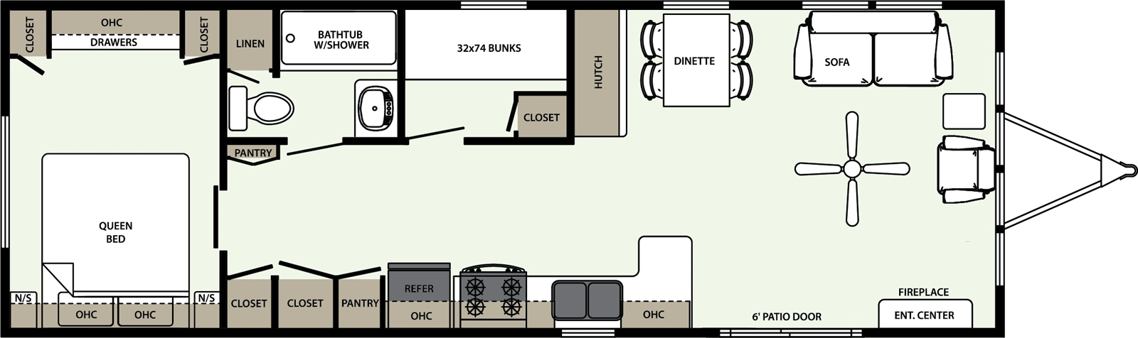 With 494 sq ft and two bedrooms, the 41BH-C is great for families or friends. The bunk room offers flexible sleeping options, while solid framing and insulation help the unit stand up to extended use in a campground setting.