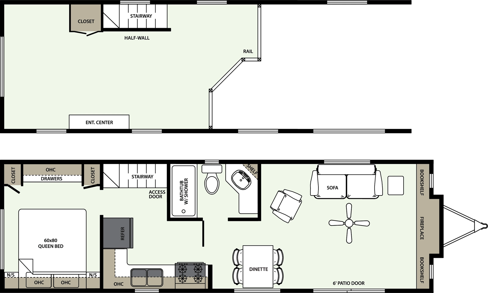 The 39 CBDL features 396 sq ft with a loft above the living area to create extra sleeping or storage space. The central kitchen layout makes the interior feel connected and easy to navigate. Rugged materials and an efficient footprint offer value for campers who want a dependable park model.