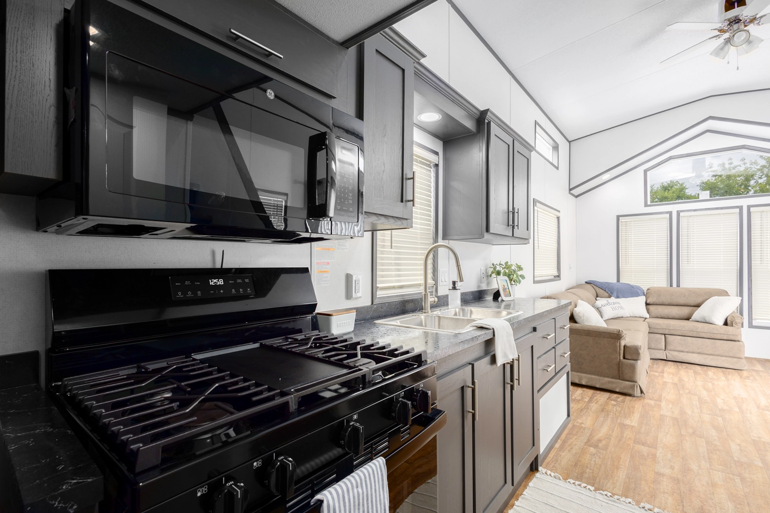 The Summit 355FLL-S delivers 377 sq ft of open living with a front-living layout and one bath. Its steel I-beam chassis, thermopane windows, and R22 insulation create a durable and energy-smart base for extended outdoor stays. Ideal for RVers who want a well-crafted, efficient floor plan that emphasizes comfort and performance.