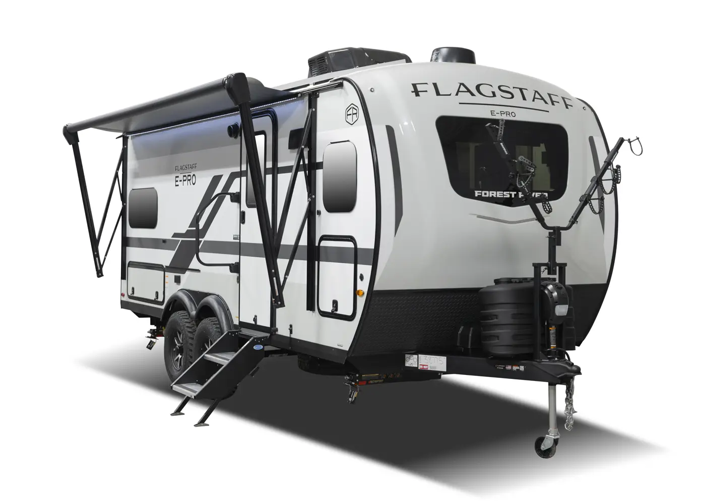 The 20FK is a compact trailer packed with big features! Our first dual axle E-Pro gives you improved stability and towing confidence in a lightweight design. The front kitchen offers excellent counter space while the rear sleeping area and slide-out create a comfortable, open living space. At just over 21 feet, and around 4,200 lbs., the 20FK delivers easy towing with the durability and off grid features that Flagstaff is known for.