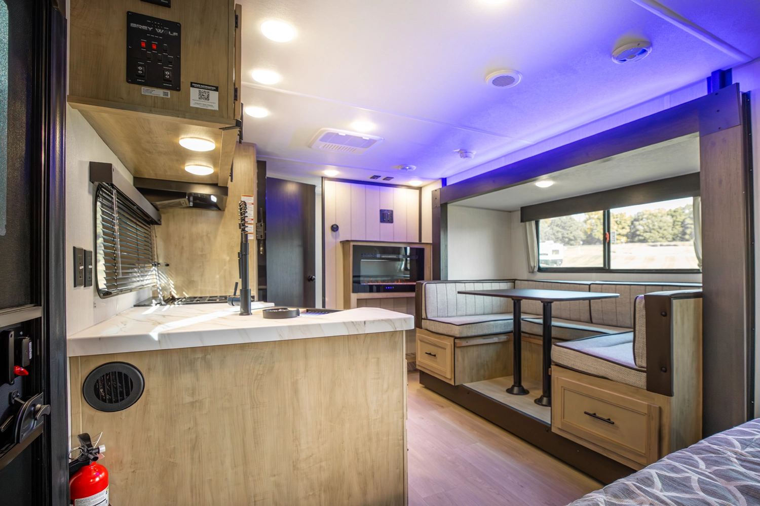 • Cherokee Black Label Grey Wolf (Deep Tinted Frameless Automotive Glass Windows, High Gloss Gel Coat Exterior Sidewalls, Multicolor Reading Lights, Pillowtop Mattress Upgrade, Power Tongue Jack, Pull Out Sprayer Faucet, Solid Surface Countertops, Thermo Foil Arctic Insulation)