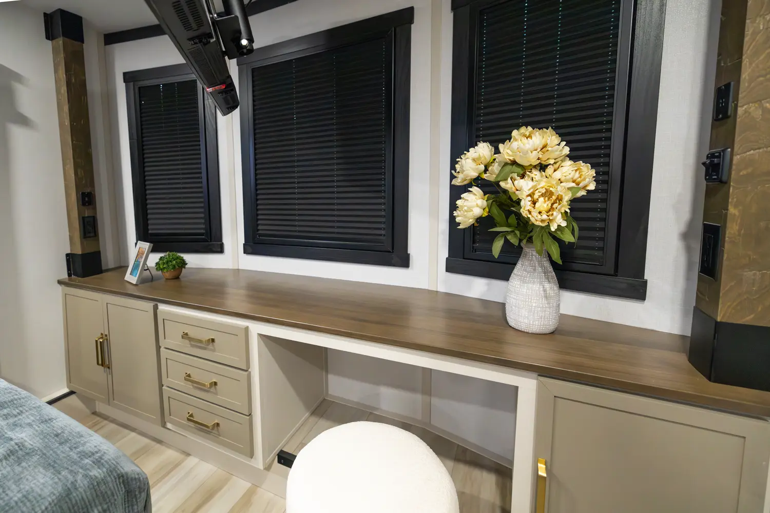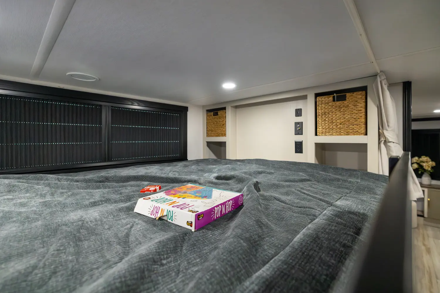 • Leuvered Openings Above Custom King Bed Loft