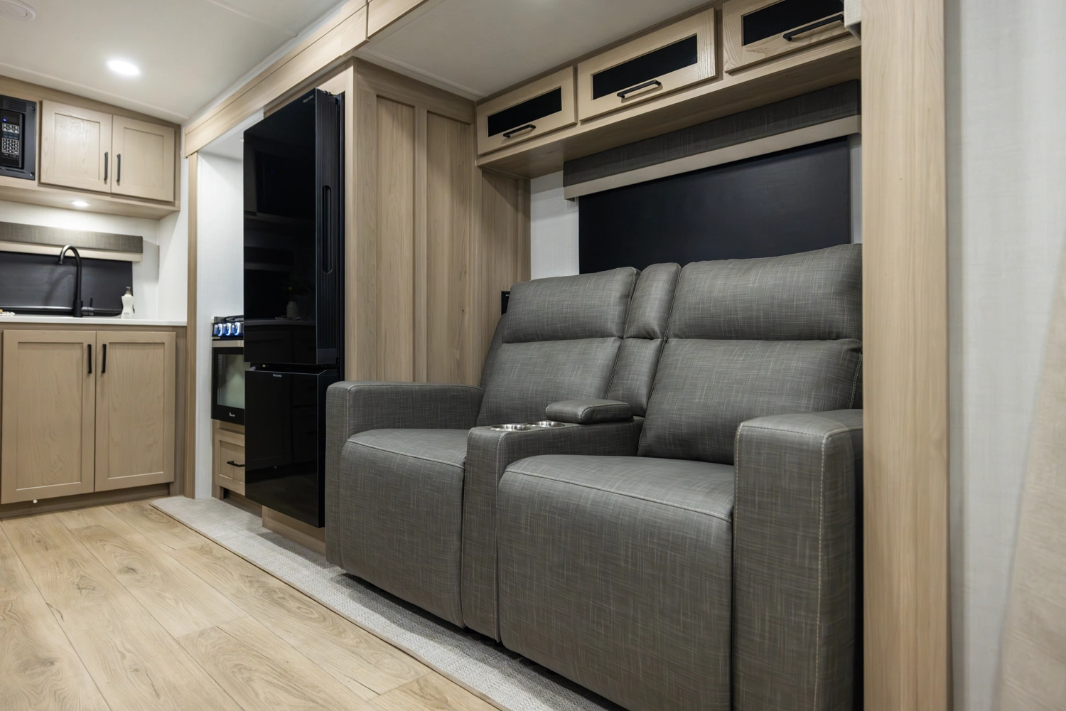 The 2522FB is a beautiful front bedroom floor plan featuring a unique wardrobe/pantry slideout for exceptional storage and organization. The living area includes theater seating directly across from the adjustable “televator” which raises for TV viewing and lowers so you can enjoy the massive door side window views. A versatile dinette and spacious rear kitchen with plenty of counter space completes the thoughtful design.