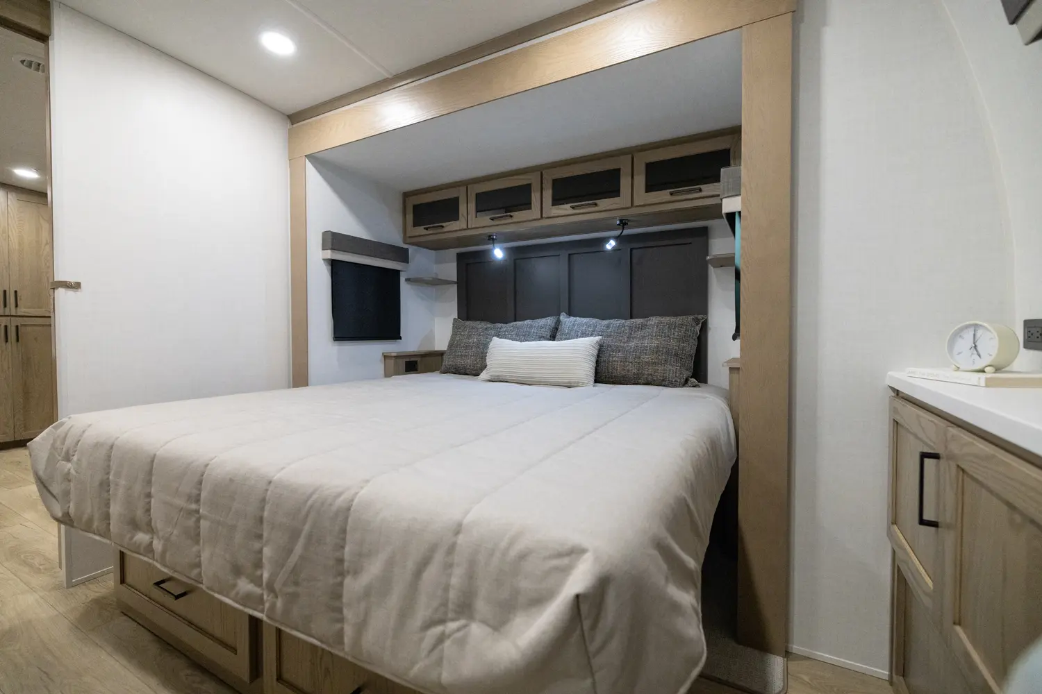 Adding another suites series model to our lineup, this floor plan might just take the bacon. With a giant king bed standard, enough storage for all your snacks, and an outside kitchen that is a chef's dream, this model has it all in a length under 30 ft.